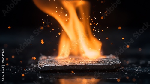 Fire Burning on Dark Material with Bright Orange Flames and Sparks