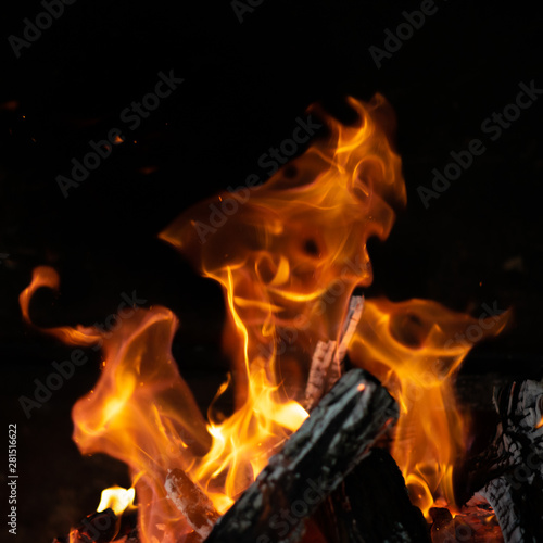 fire flames in bonfire stove isolated with balck