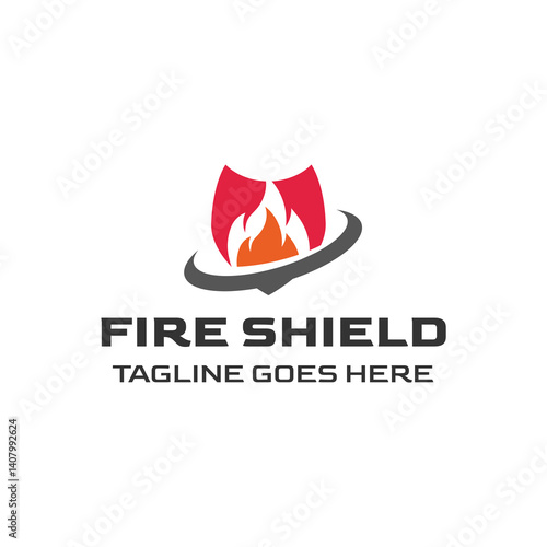 Fire Shield Logo Design isolated on white background.