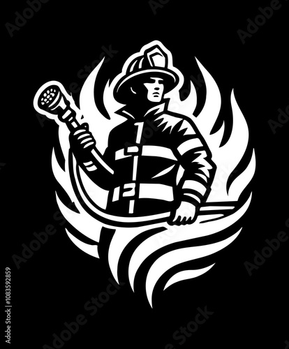 firefighter engraving black and white outline