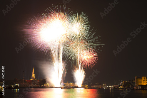 Firework at Wat arun under new year 2016 celebration time, Thail