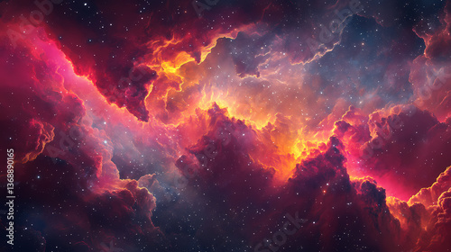 Firmament mesmerizing plasma cosmic ruby coral drifts hues tapestry. Nebula Drift. Illustration