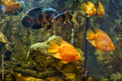Fish swim in the aquarium