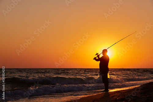 Fisherman Casting at Sunset