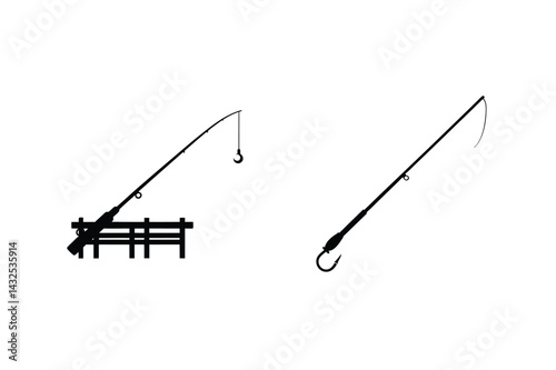Fishing Rods Silhouette Vector Art On Pier Ideal For Outdoors Illustrations