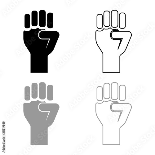 Fist up Concept of freedom fight revolution power protest icon outline set black grey color vector illustration flat style image