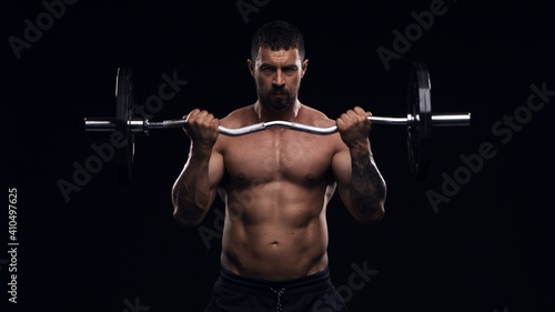 Fit and sporty bodybuilder over black background. Sportsman in studio. Sport and fitness concepts.