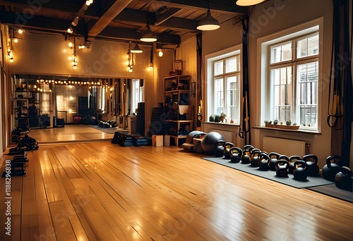 fitness, studio, physical exercise, gym, exercise, training, modern, space, equipment, yoga, mat, healthy, strength, cardio, resistance, functional, machine, energy, wellness, interior, design, motivation, high technology, virtual, roomy, dynamic, calming, wood, light, serene, atmosphere, health, activity, sharpened, movement