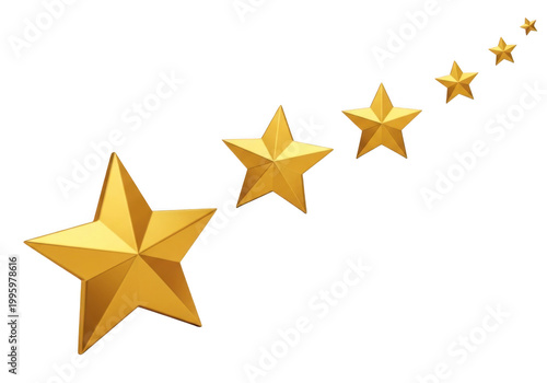 Five golden stars isolated on transparent background