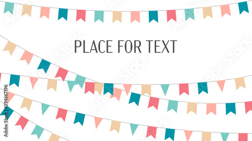 Flag Bunting garland color, holidays. Vector holiday ribbon, template, with space for text on a white background.