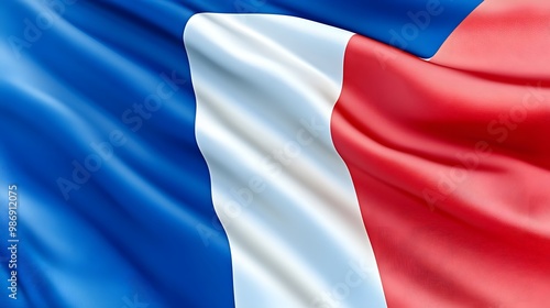 Flag of France blowing in the wind, featuring a full-page display of the French tricolor flag in a realistic 3D illustration.