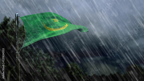flag of Mauritania with rain and dark clouds, hard times symbol - nature 3D illustration