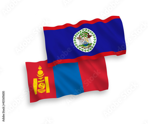 Flags of Belize and Mongolia on a white background