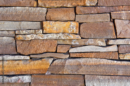Flagstone abstract. Carefully stacked mortarless wall from locally found flagstones, Albuquerque, New Mexico