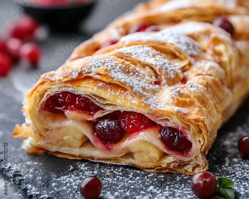 Flaky Fruit Filled Strudel Dusted with Powdered Sugar Showcasing Delicate Texture and Flavor Balance