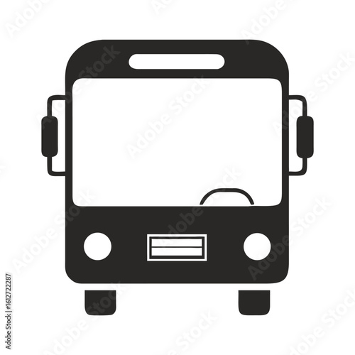 Flat black design of an auto bus in silhouette vector icon illustration on white background. Perfect for maps, ride-sharing platforms, and transport branding.