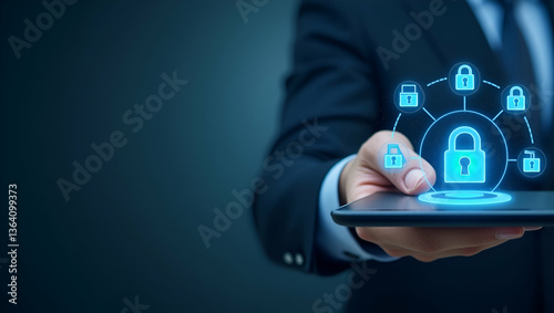 Flat Businessman using computer backup storage data Internet technology backup online documentation database digital file storage system software file access doc sharing concept as Businessman backing