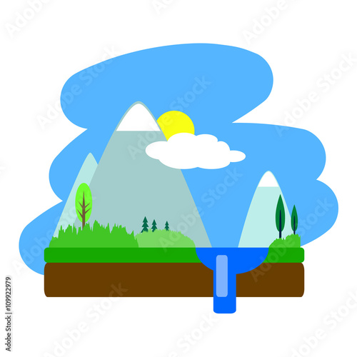 Flat cartoon summer landscape vector illustration
