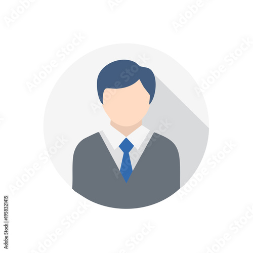 Flat Design Male Profile Avatar Icon with Blue Circle and Shadow