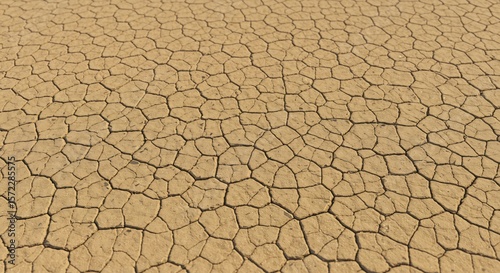 Flat expanse of parched light brown earth exhibiting intricate polygonal cracks from arid conditions