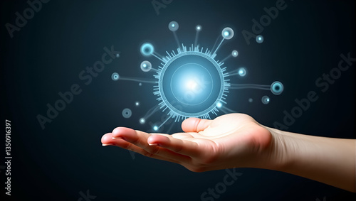 Flat Hand Showcasing Holographic Business Insight Strategy Symbol