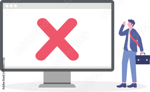 Flat illustration of people stare at laptop screen dead with cross sign software error cyber attack technical issue server down