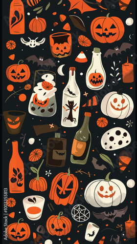 Flat lay Vector Illustration Arrangement of halloween party elements, Happy Halloween