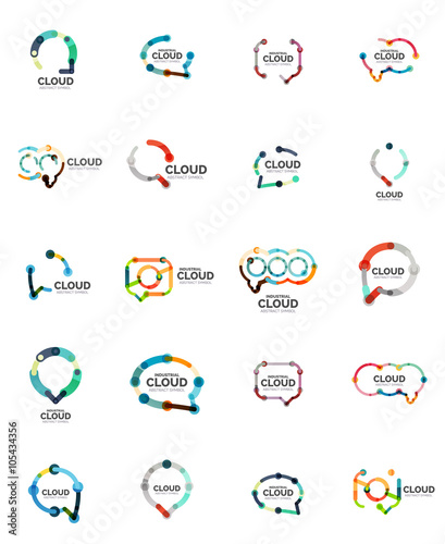 Flat linear design speech cloud logo. Talk bubble, modern geometric industrial thin line icon