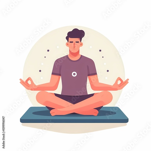 Flat Style Illustration of a Man Practicing Meditation on a Mat, White Background