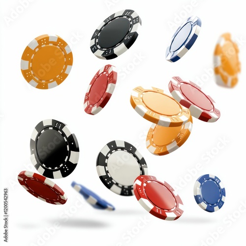 floating colorful poker chips in red, black, and blue, symbolizing gambling, gaming, and casino entertainment with dynamic motion.