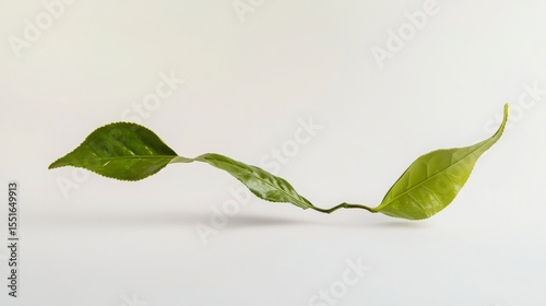 Floating Green Leaves On White Background Studio Photography