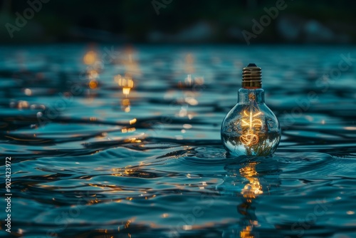 Floating Light Bulb in Water Symbolizing Innovation Creativity and Bright Ideas in a Unique Natural Setting