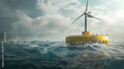 Floating offshore wind farm with underwater turbine maintenance facility