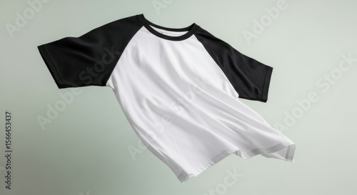 Floating Raglan T-Shirt: Black Sleeves and White Body on Soft Green Background