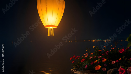 floating sky lanterns lamp to the night sky