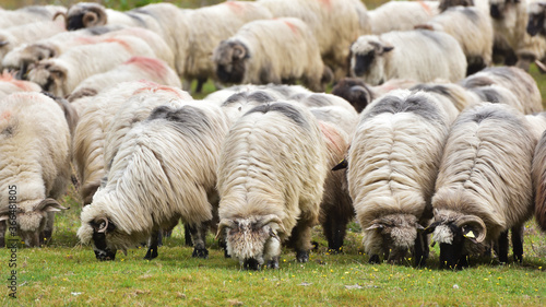 Flock of sheep grazing in a hill