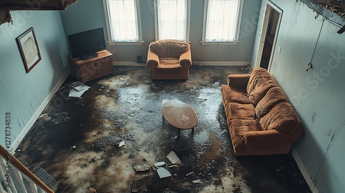 Flooded abandoned living room