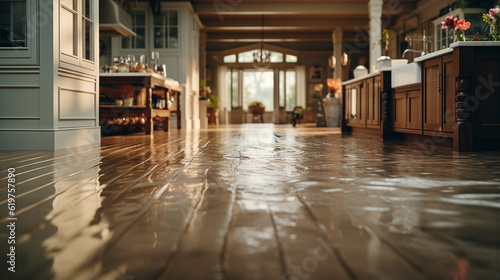 Flooded floor in kitchen from water leak. Generative Ai