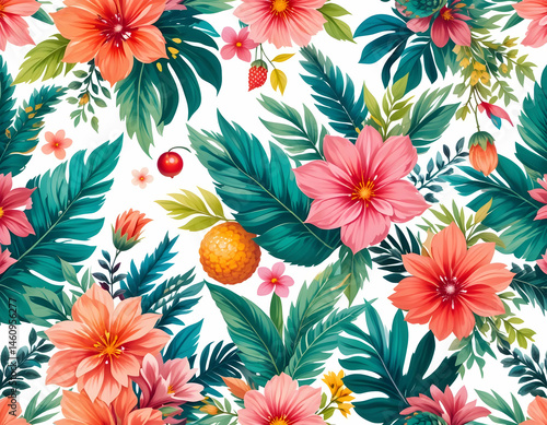 Floral and Foliage Pattern with Tropical Theme Design