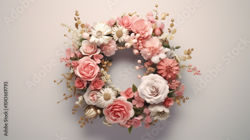 Floral Circle Frame. A flower wreath made of pink roses. frame, floral, circle, des