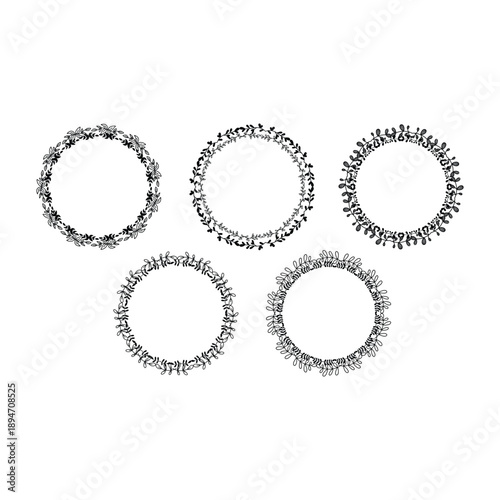 Floral circle round border flower frame ring for decoration ornament in vector illustration