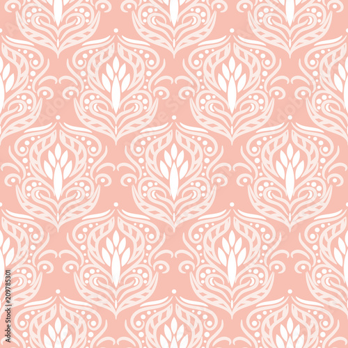Floral damask pink seamless vector pattern.