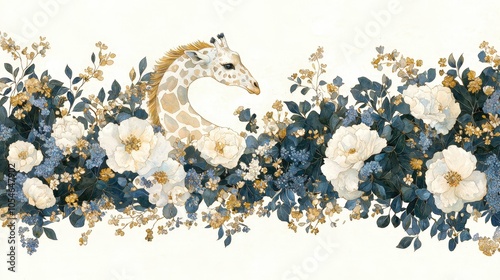 Floral giraffe: elegant pastel blooms and wildlife fusion
