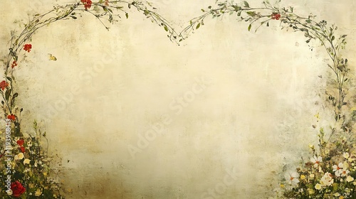 Floral Heart Shaped Frame On Vintage Background