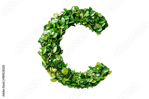 Floral Letter C with Lush Green Leaves and Botanical Typography, Nature-Inspired Alphabet Design on Transparent Background, Perfect for Eco-Friendly and Environmental Themes