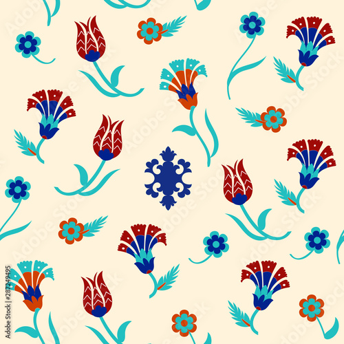 Floral seamless pattern design with Turkish motifs. Vector illustration.
