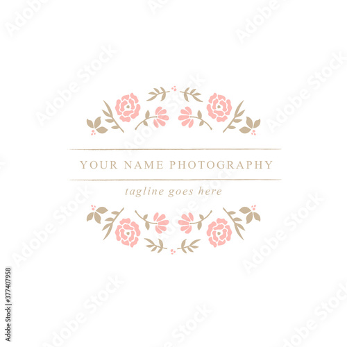 floral wreath branch typography logo