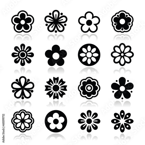 Flower head vector icons set