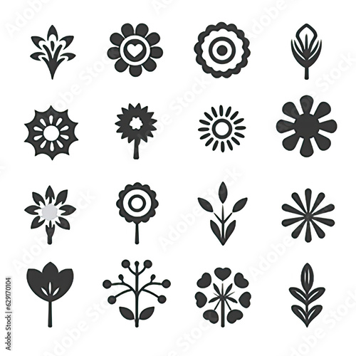 Flower icons set, Vector,Flowers icons flat monochromatic on flat white background , black and white