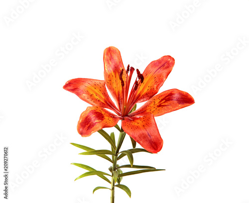 flower of a tiger lily on an isolated white background. Lilium lancifolium